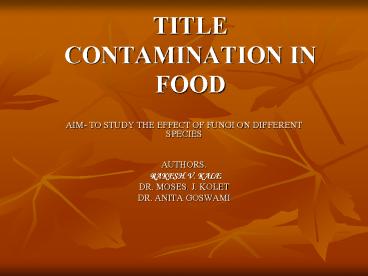 <Notice: Removed> TITLE CONTAMINATION IN FOOD PowerPoint PPT Presentation