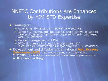 NNPTC Contributions Are Enhanced by HIV-STD Expertise PowerPoint PPT Presentation