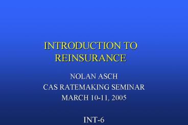 <Notice: Removed> INTRODUCTION TO REINSURANCE PowerPoint PPT Presentation
