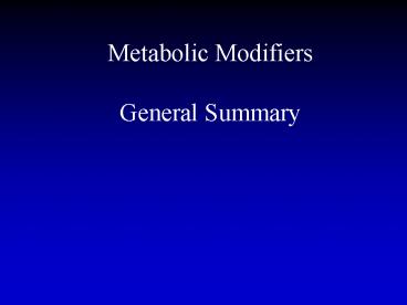 <Notice: Removed> Metabolic Modifiers General Summary PowerPoint PPT Presentation