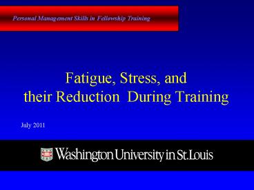 Personal Management Skills in Fellowship Training
