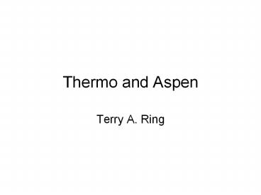• Use Ideal and Peng Robinson Thermo Pkg.