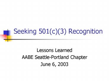 <Notice: Removed> Seeking 501(c)(3) Recognition PowerPoint PPT Presentation