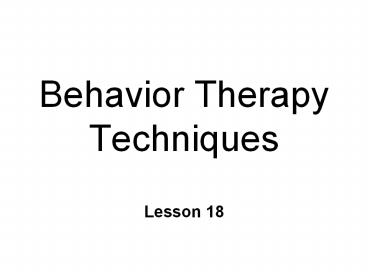 <Notice: Removed> Behavior Therapy Techniques PowerPoint PPT Presentation