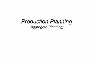 Production Planning (Aggregate Planning) PowerPoint PPT Presentation