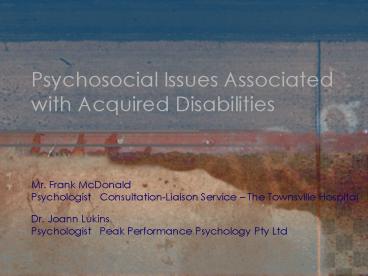 Title: Psychosocial Issues Associated with Acquired Disabilities
