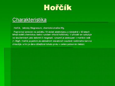 • Horcík, latinsky Magnesium, chemická znacka Mg.