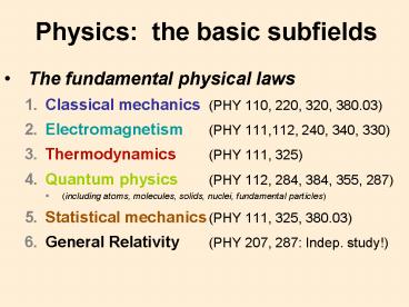 <Notice: Removed> Physics: the basic subfields PowerPoint PPT Presentation