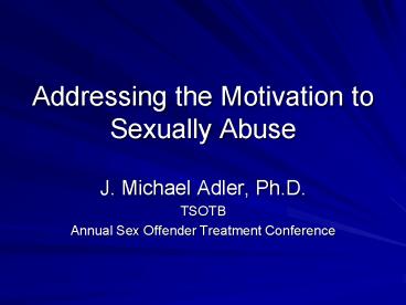Addressing the Motivation to Sexually Abuse PowerPoint PPT Presentation