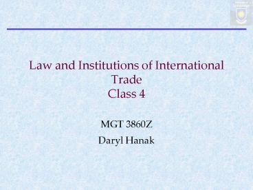 Law and Institutions of International Trade Class 4 PowerPoint PPT Presentation