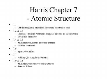 Title: Harris Chapter 7 - Atomic Structure