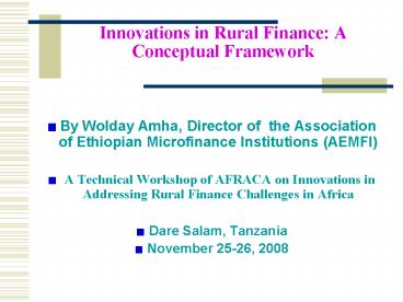 Title: Innovations in Rural Finance: A Conceptual Framework