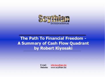 <Notice: Removed> The Path To Financial Freedom - A Summary of Cash Flow Quadrant by Robert Kiyosaki PowerPoint PPT Presentation