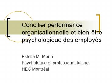 Title: Concilier performance organisationnelle et bien-