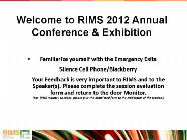 <Notice: Removed> Familiarize yourself with the Emergency Exits Silence Cell Phone/Blackberry Your Feedback is very important to RIMS and to the Speaker(s). Please complete the session evaluation form and return to the door Monitor. (For (IND) industry sessions, PowerPoint PPT Presentation