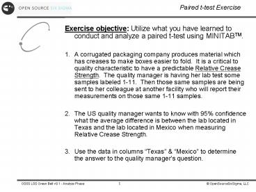 <Notice: Removed> Paired t-test Exercise PowerPoint PPT Presentation
