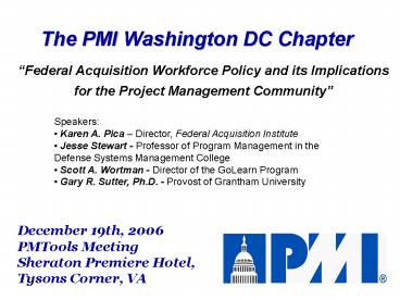 <Notice: Removed> The PMI Washington DC Chapter PowerPoint PPT Presentation
