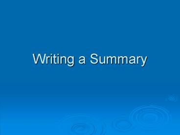 <Notice: Removed> Writing a Summary PowerPoint PPT Presentation