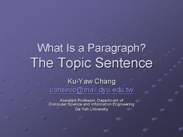 Title: What Is a Paragraph? The Topic Sentence