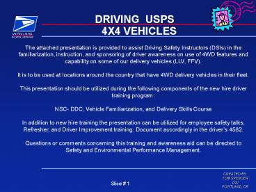 Title: DRIVING USPS 4X4 VEHICLES