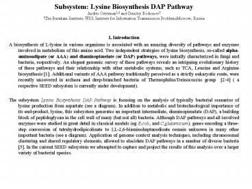 development). - The subsystem Lysine Biosynthesis DAP Pathway is