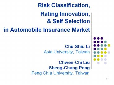 <Notice: Removed> Risk Classification, Rating Innovation, PowerPoint PPT Presentation