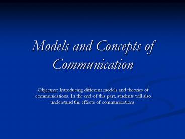 <Notice: Removed> Models and Concepts of Communication PowerPoint PPT Presentation