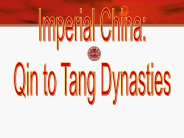 Title: Imperial China -- Qin to Ming Dynasties