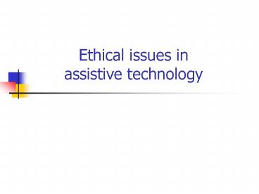 Ethical issues in assistive technology - PowerPoint PPT Presentation