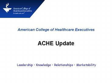 American College of Healthcare Executives PowerPoint PPT Presentation