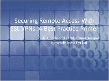- Sikhi Gundu and Kartik Kumar, Juniper Networks