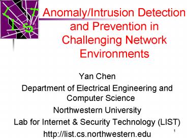 Title: Anomaly/Intrusion Detection and Prevention in Challenging Network Environments