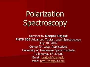 <Notice: Removed> Polarization Spectroscopy PowerPoint PPT Presentation