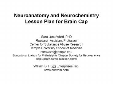 Title: Neuroanatomy and Neurochemistry Lesson Plan for Brain Cap