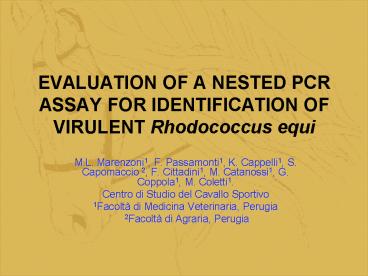 <Notice: Removed> EVALUATION OF A NESTED PCR ASSAY FOR IDENTIFICATION OF VIRULENT Rhodococcus equi PowerPoint PPT Presentation