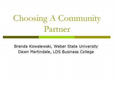 Title: Choosing A Community Partner