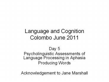 <Notice: Removed> Language and Cognition Colombo June 2011 PowerPoint PPT Presentation