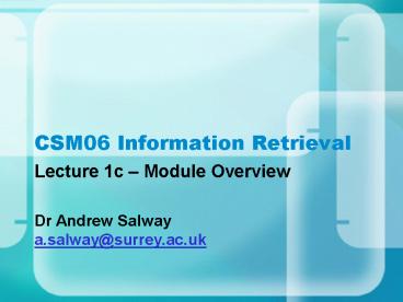 <Notice: Removed> CSM06 Information Retrieval PowerPoint PPT Presentation
