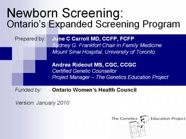 <Notice: Removed> Newborn Screening: Ontario PowerPoint PPT Presentation