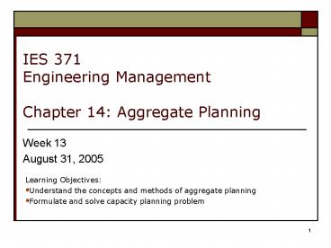 Title: IES 371 Engineering Management Chapter 14: Aggregate Planning
