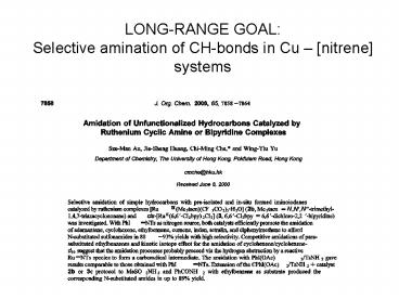 1LONG-RANGE GOAL Selective amination of CH-bonds