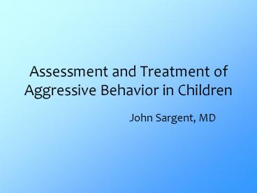 Title: Assessment and Treatment of Aggressive Behavior in Children