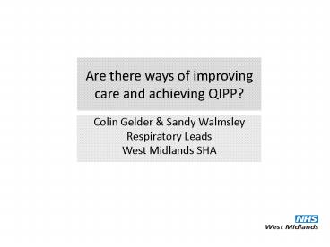 <Notice: Removed> Are there ways of improving care and achieving QIPP? PowerPoint PPT Presentation