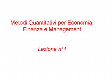 Title: Metodi Quantitativi per Economia, Finanza e Management Lezione n