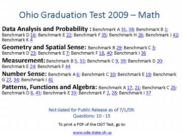 <Notice: Removed> Ohio Graduation Test 2009 PowerPoint PPT Presentation