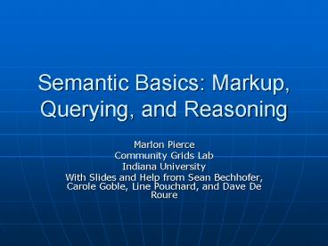 <Notice: Removed> Semantic Basics: Markup, Querying, and Reasoning PowerPoint PPT Presentation