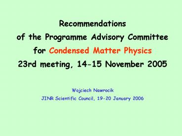 2005 Wojciech Nawrocik JINR Scientific Council,