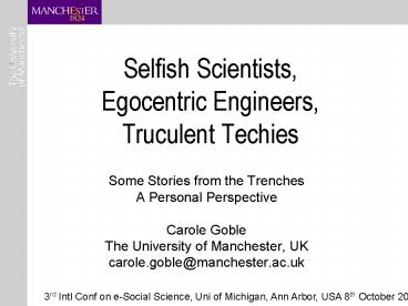 3rd Intl Conf on e-Social Science, Uni of