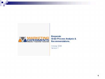 1 ResperateOrder Process Analysis Recommendations. October 2006 Version 1