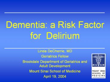 <Notice: Removed> Dementia: a Risk Factor for Delirium PowerPoint PPT Presentation
